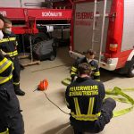 Unter Einhaltung strenger Vorgaben des Landesfeuerwehrverband wurde unter der Ausbildungsleitung von Ausbildner BM Christoph Karl theoretisch vor dem Feuerwehrhaus das richtige Absichern nach einem Verkehrsunfall geübt. Anschließend wurde im Feuerwehrhaus das Thema „Leinen & Knoten“ besprochen und auch praktisch durchgenommen.