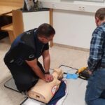 Nach dem theoretischen Teil wurde dann in die Praxis übergegangen – hier wurde dann an einer Übungspuppe mit dem Schulungs-Defibrillator geübt.