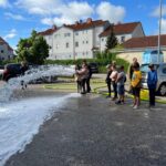 Nach einer Führung durch das  Feuerwehrhaus wurde den jungen Besuchern alle Geräte und Fahrzeuge erklärt und vorgeführt. Danach durften unsere Gäste einmal das Strahlrohr ausprobieren. Anschließend wurde ein Fettbrand simuliert und den Kindern gezeigt was passiert wenn man mit Wasser einen Fettbrand löscht.