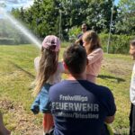 Nach einer Führung durch das Feuerwehrhaus wurde den Kindern alle Geräte und Fahrzeuge erklärt und vorgeführt. Danach durften unsere kleinen Besucher einmal das Strahlrohr ausprobieren. Anschließend wurde ein Fettbrand simuliert und den Kindern gezeigt was passiert wenn man mit Wasser einen Fettbrand löscht.