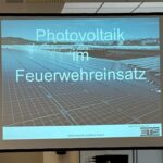 Im zweiten Teil wurde das Thema Photovoltaikanlagen im Feuerwehreinsatz besprochen; hier wurde wieder mit einem Theorieteil begonnen, danach eine Unterweisung an einer aktiven Photovoltaikanlage durchgeführt.
