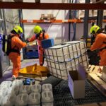 Die Aufgabe darin bestand, eine Person, welche mit einem Stapler und einem Container mit unbekannter Chemikalie verunfallte, zu retten, und die Gefahrenstelle abzusperren. Spezialkräfte sollen den undichten Container abdichten.
