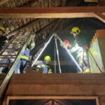 - Diese Station widmete sich der sicheren Handhabung von Seilen und der Absturzsicherung. Es wurden verschiedene Techniken wie das Abseilen und der Einsatz von Bandschlingen geübt. Besonderes Augenmerk lag auf der Pendelsturz-Methodik, um in schwierigen Einsatzsituationen schnell und sicher handeln zu können.