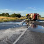 Nachdem der PKW abgelöscht war und keine Gefahr mehr bestand, stellten wir das Fahrzeug mittels Rangierroller auf einer gesicherten Stelle ab und konnten somit nach ca. einer Stunde die Einsatzbereitschaft wiederherstellen.