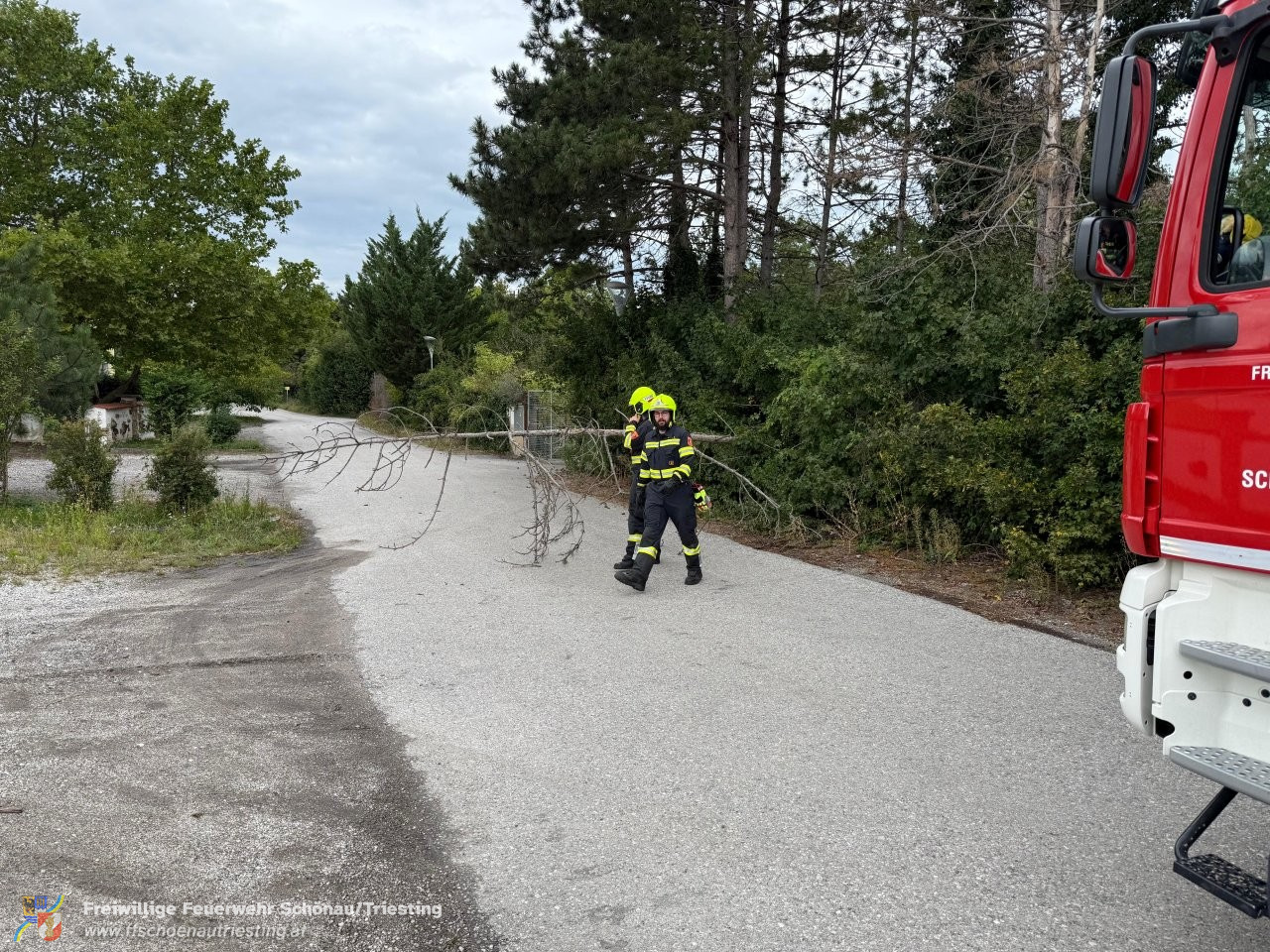 Unsere Aufgabe war es, die Gefahrenstelle abzusichern, sowie die Baumteile welche drohten auf die Straße zu stürzen, zu entfernen. Anschließend konnten wir wieder ins Feuerwehrhaus einrücken und die Einsatzbereitschaft wiederherstellen.