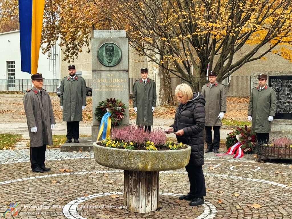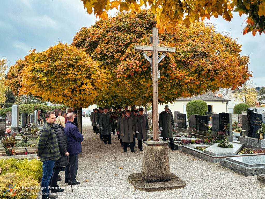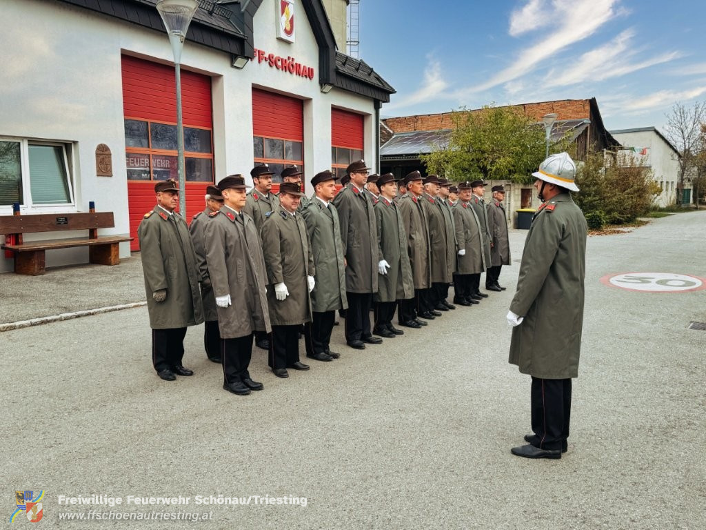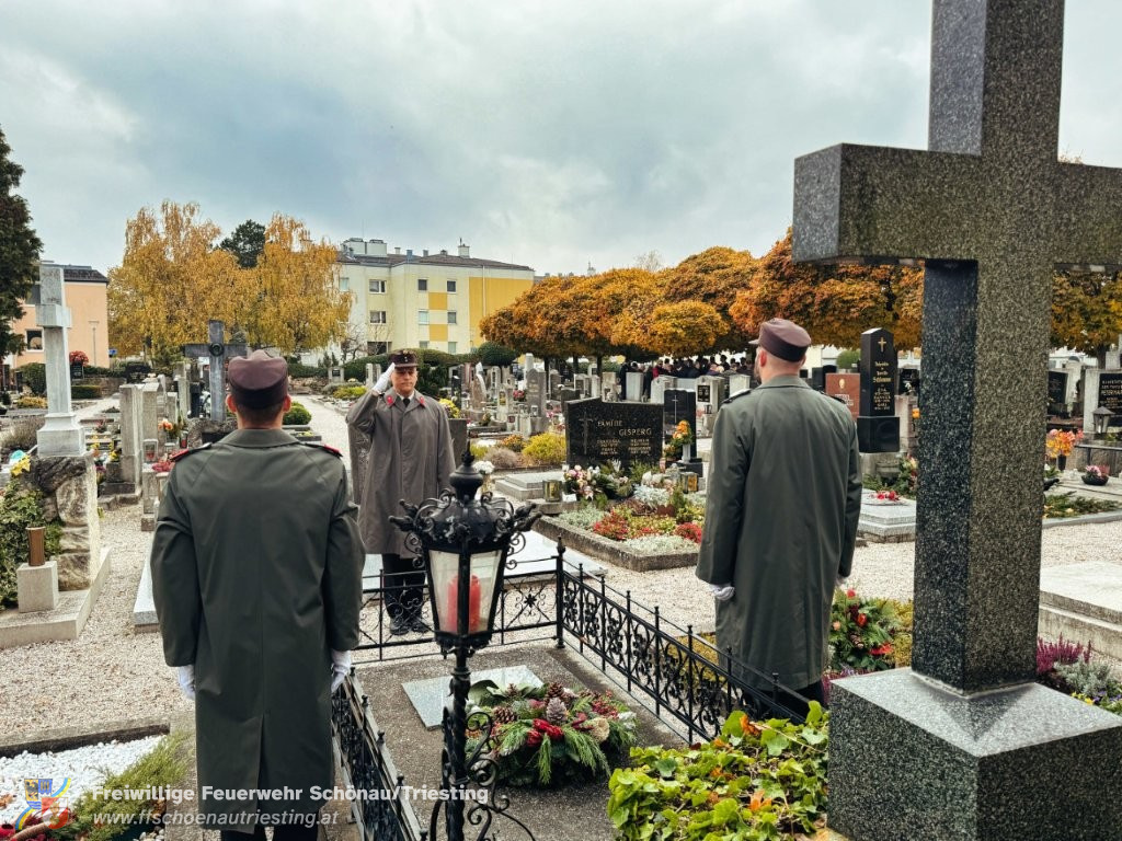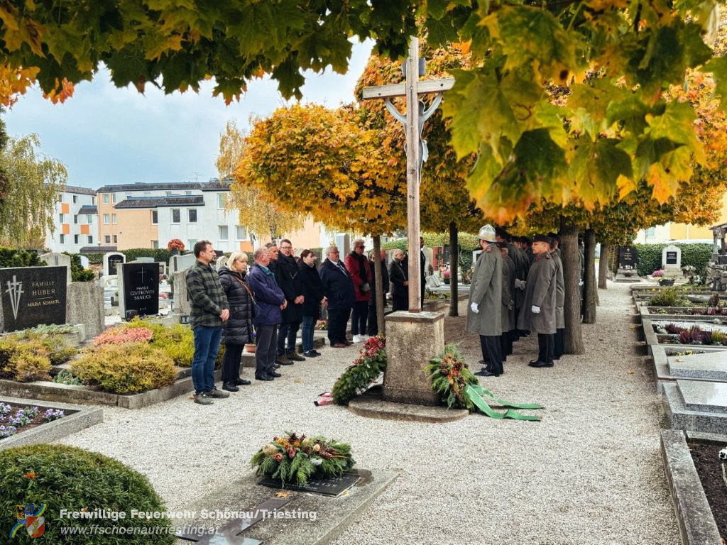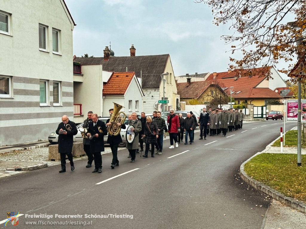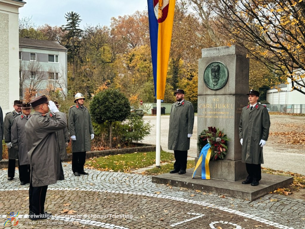 Am Allerheiligentag versammelten sich Vertreterinnen und Vertreter der Gemeinde, der Freiwilligen Feuerwehr Schönau an der Triesting, des Sportvereins und des Samariterbundes Günselsdorf, um gemeinsam zum NÖ Landesfeuerwehrkommandant Ing. Carl Jukel-Denkmal zu marschieren. In ehrendem Gedenken an die Verstorbenen und die Gründerpersönlichkeiten unserer Gemeinschaft wurden dort Kränze niedergelegt. OBI Manuel Rupp führte den Zug in gekonnter Manier sicher durch Schönau an der Triesting