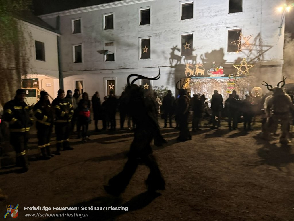 Am Freitag, dem 28. November 2025, stellte die Feuerwehr Schönau an der Triesting im Rahmen des Adventmarkts in der Dornauer Mühle eine Brandsicherheitswache für den traditionellen Krampuslauf.