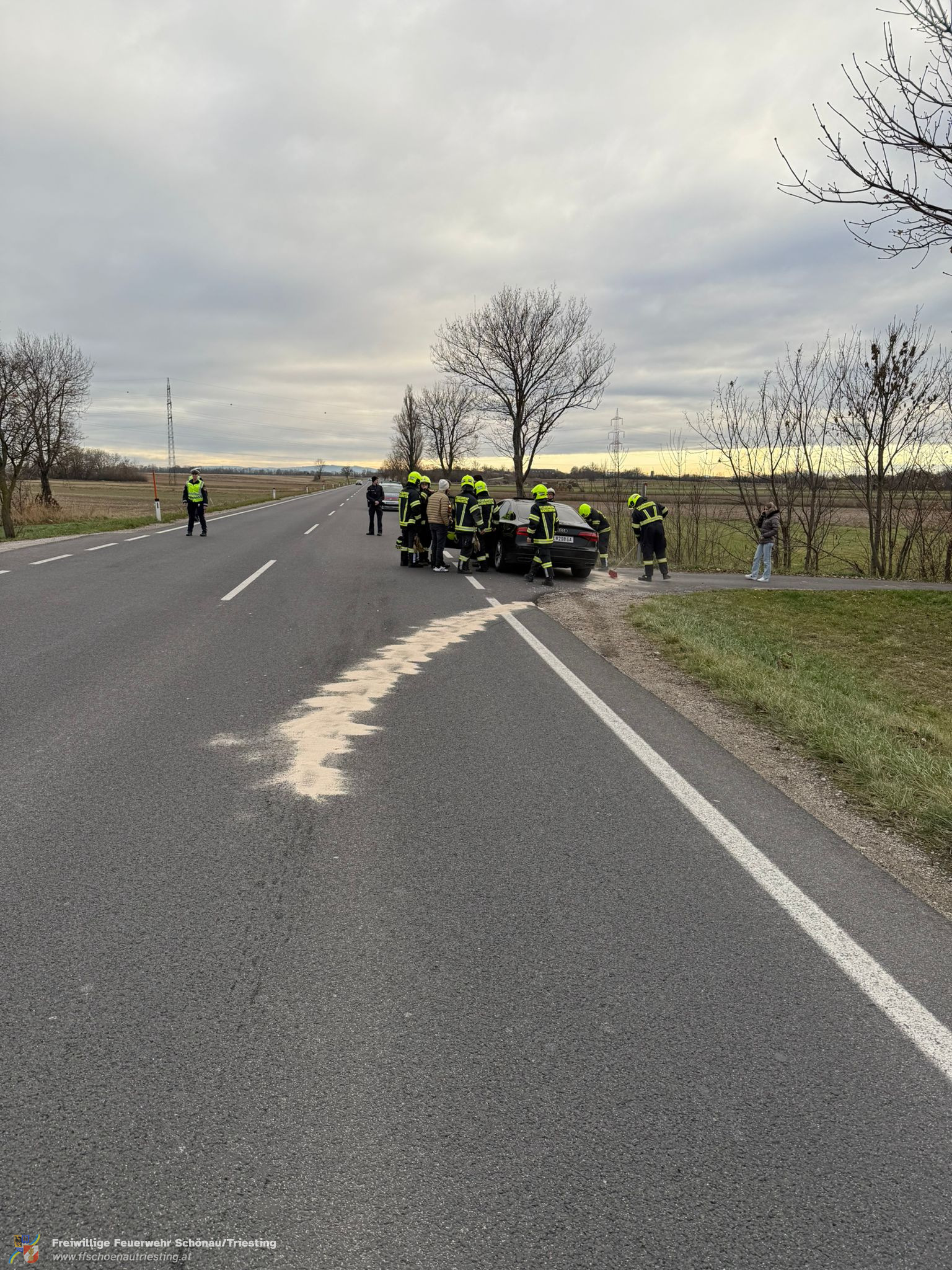 Am 29. November 2025 wurde die Freiwillige Feuerwehr Schönau an der Triesting um 14:34 Uhr über die LEA-App zu einem Verkehrsunfall auf der B17 alarmiert.