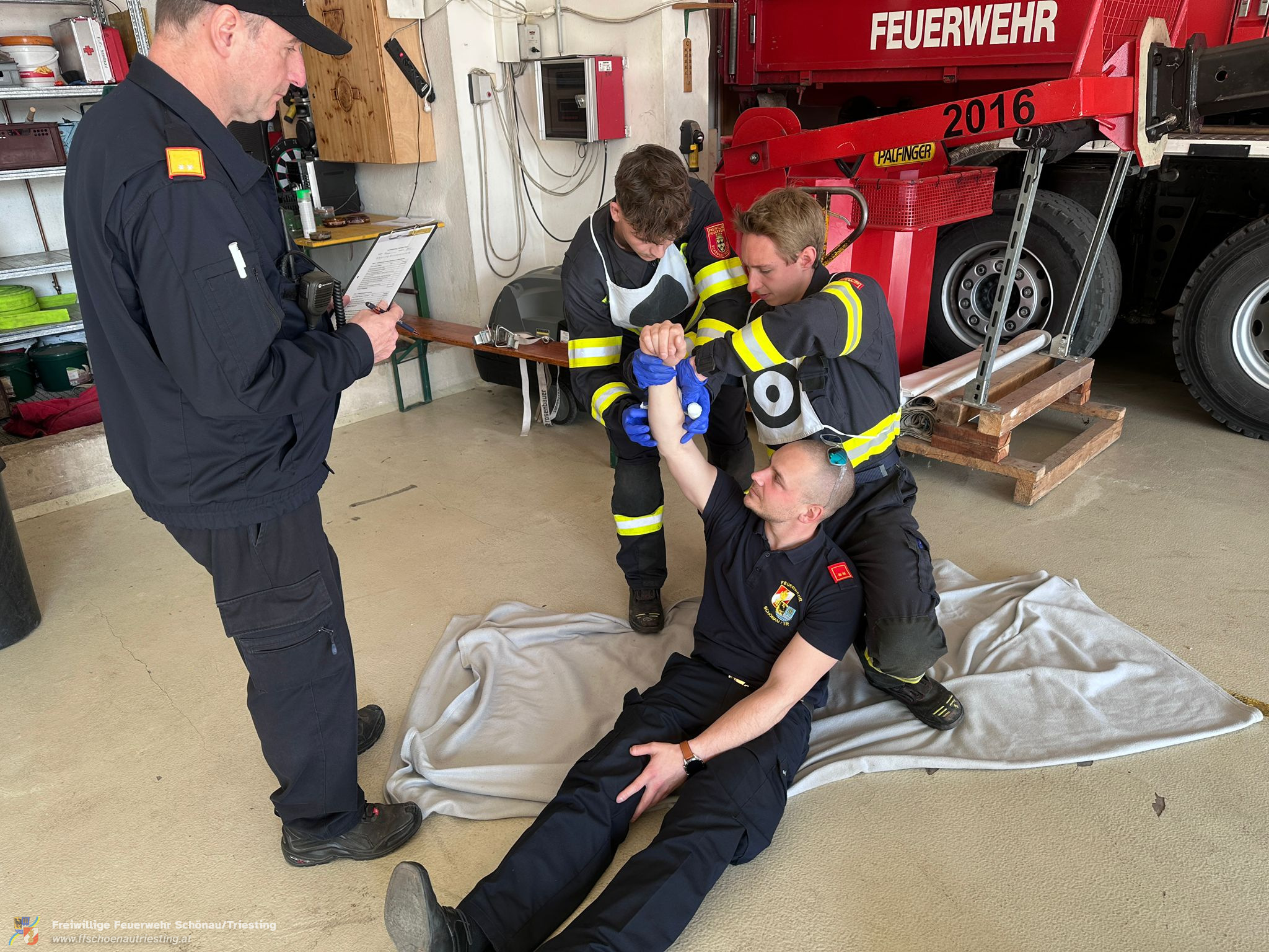 Die Prüfung umfasste drei anspruchsvolle Stationen: Erste Hilfe, Fahrzeugkunde sowie einen praktischen Einsatz am Fahrzeug. Alle Aufgaben wurden von den Teilnehmern mit großer Sorgfalt und hoher Fachkompetenz absolviert.