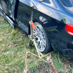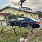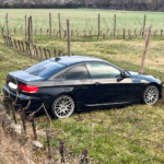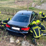 Aus bislang ungeklärter Ursache kam ein Fahrzeug von der Straße ab und landete im Vorgarten des Weinguts zwischen der Bundesstraße und den Rebstöcken.